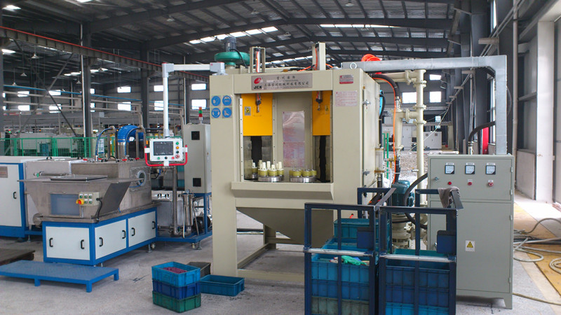 本設備是根據我公司針對蝸輪軸類產品和處理要求而專門設計的全自動轉盤式濕式噴砂機,完全適合貴公司所提供的產品要求。根據貴對產品質量及效率的要求,本機共設置8個工件裝夾位。大轉盤每轉動2個工位一停,噴砂艙布置噴砂槍